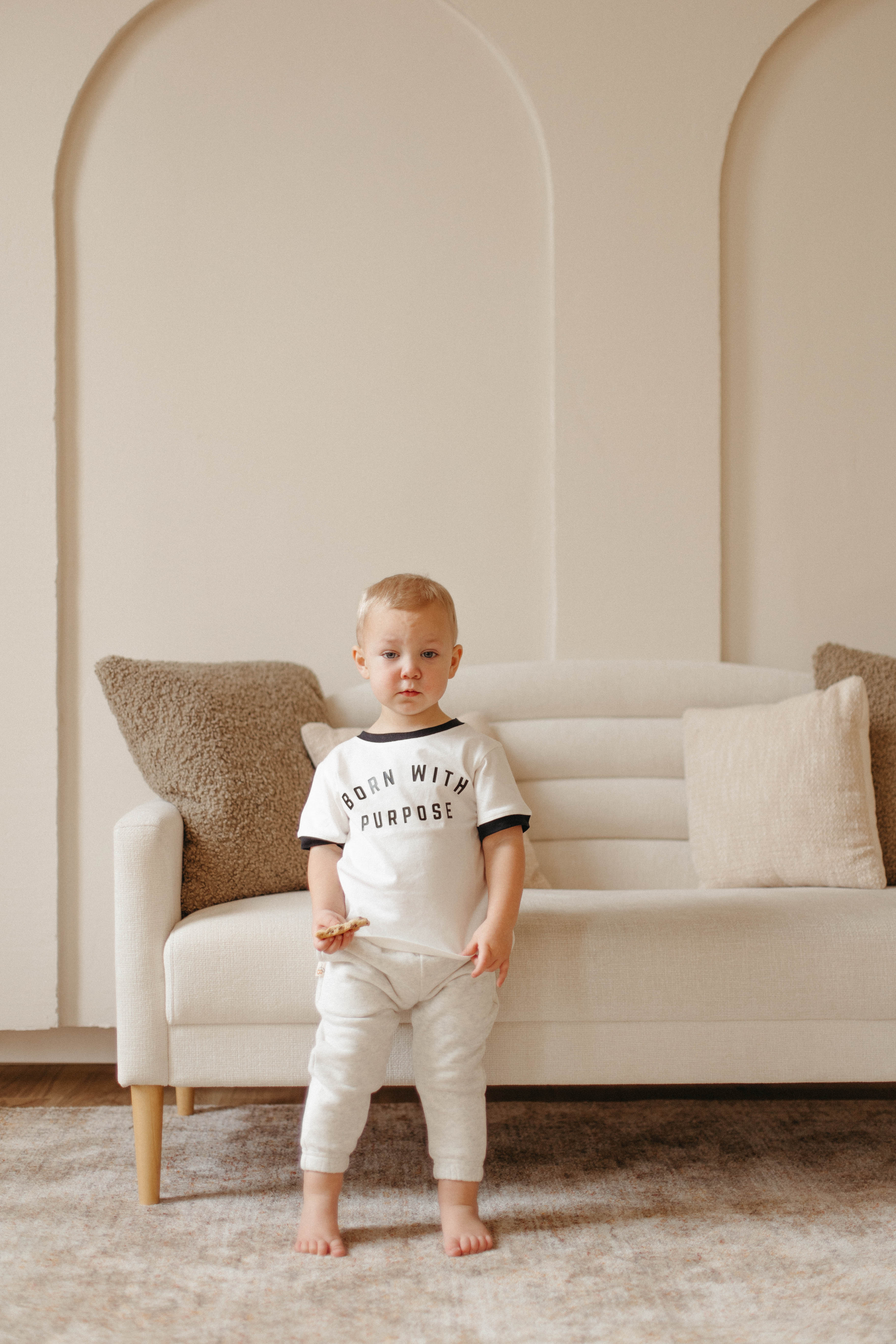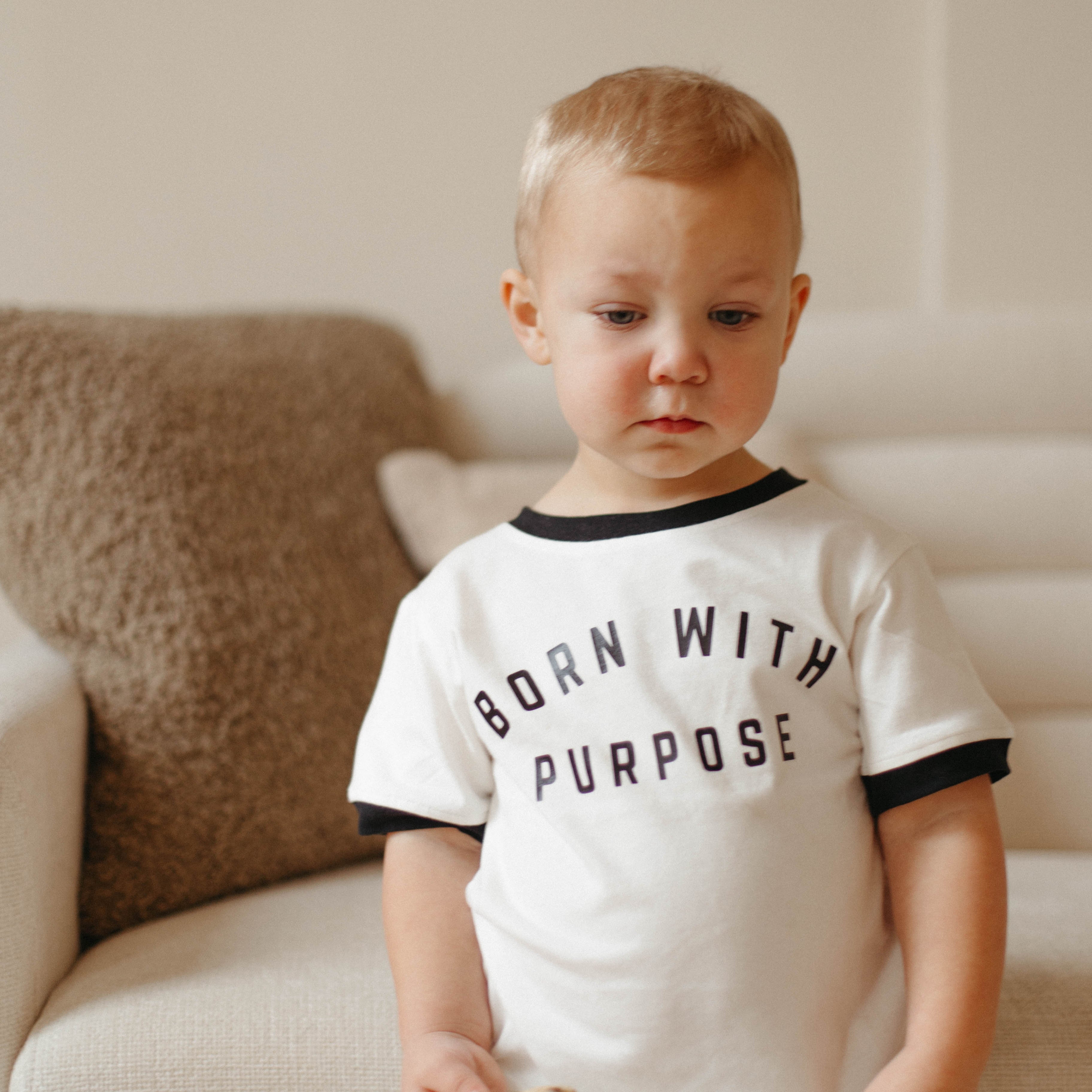 Your little one was created with a purpose, and now they can wear that truth boldly! Our new Born With Purpose toddler ringer tee is stylish, comfy, and full of meaning. Made with soft, breathable fabric and featuring a retro-inspired design, this tee is perfect for everyday wear.
