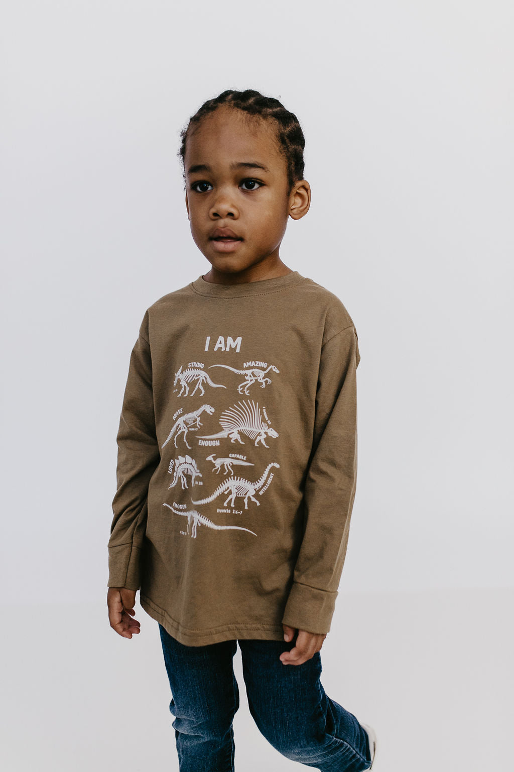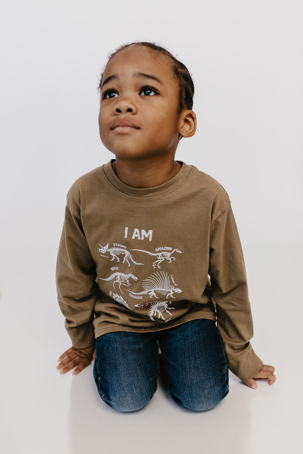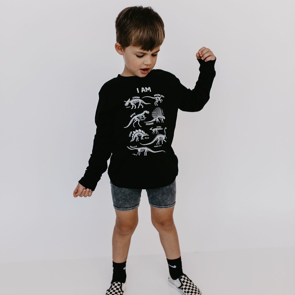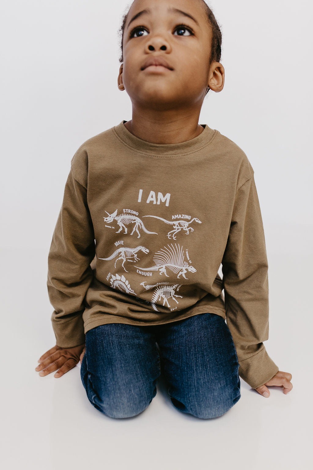 Dino Skeleton Affirmation Words Toddler T-Shirt – Long Sleeve Now Available!
