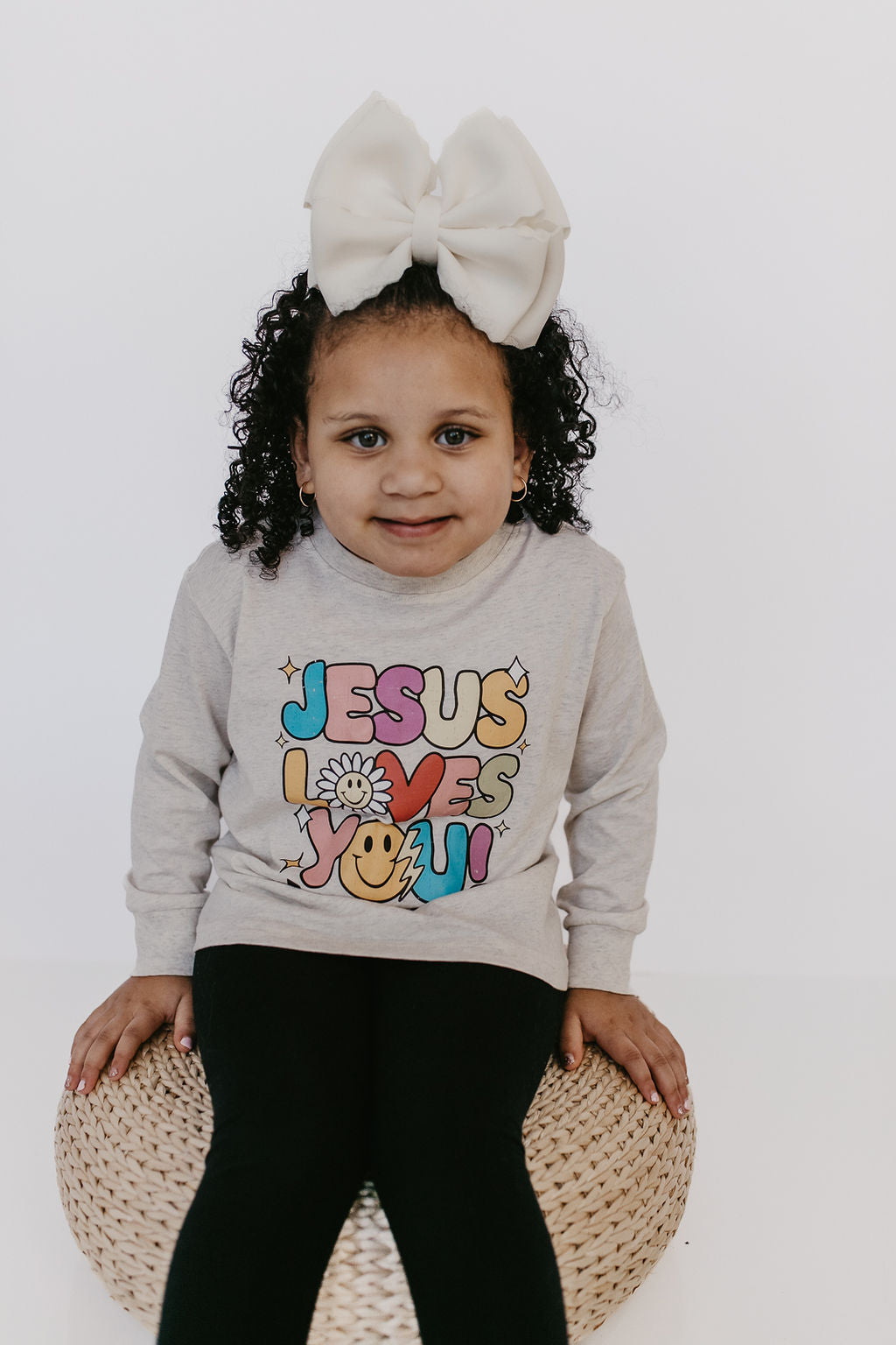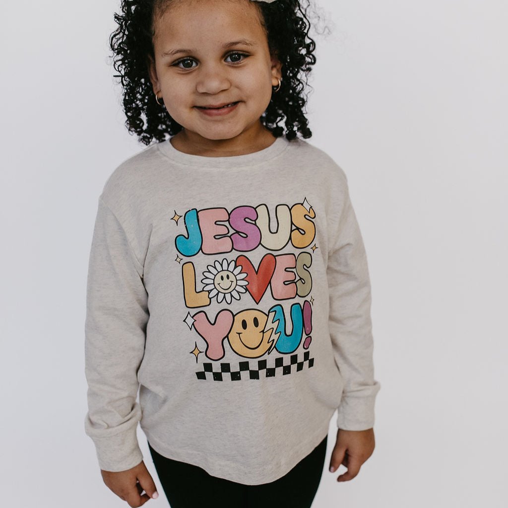 Wrap your little one in love with our "Jesus Loves You" toddler t-shirt! Featuring a sweet and timeless message, this adorable tee is perfect for all seasons. With its long sleeves, it's ideal for those crisp fall days, offering both warmth and style. Made from soft, breathable fabric, this shirt ensures all-day comfort for your active toddler while sharing a message of love and faith.
