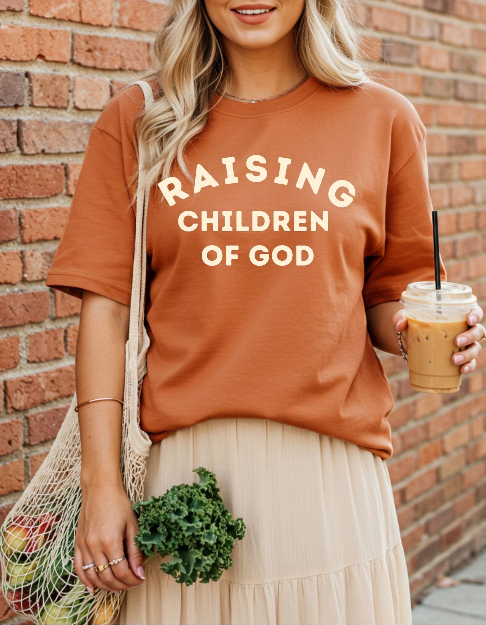 • Christian mom shirt, Raising Children of God tee, faith-based parenting shirt, Christian t-shirt for moms and dads, unisex Christian apparel, ministry clothing, Christian gift idea
