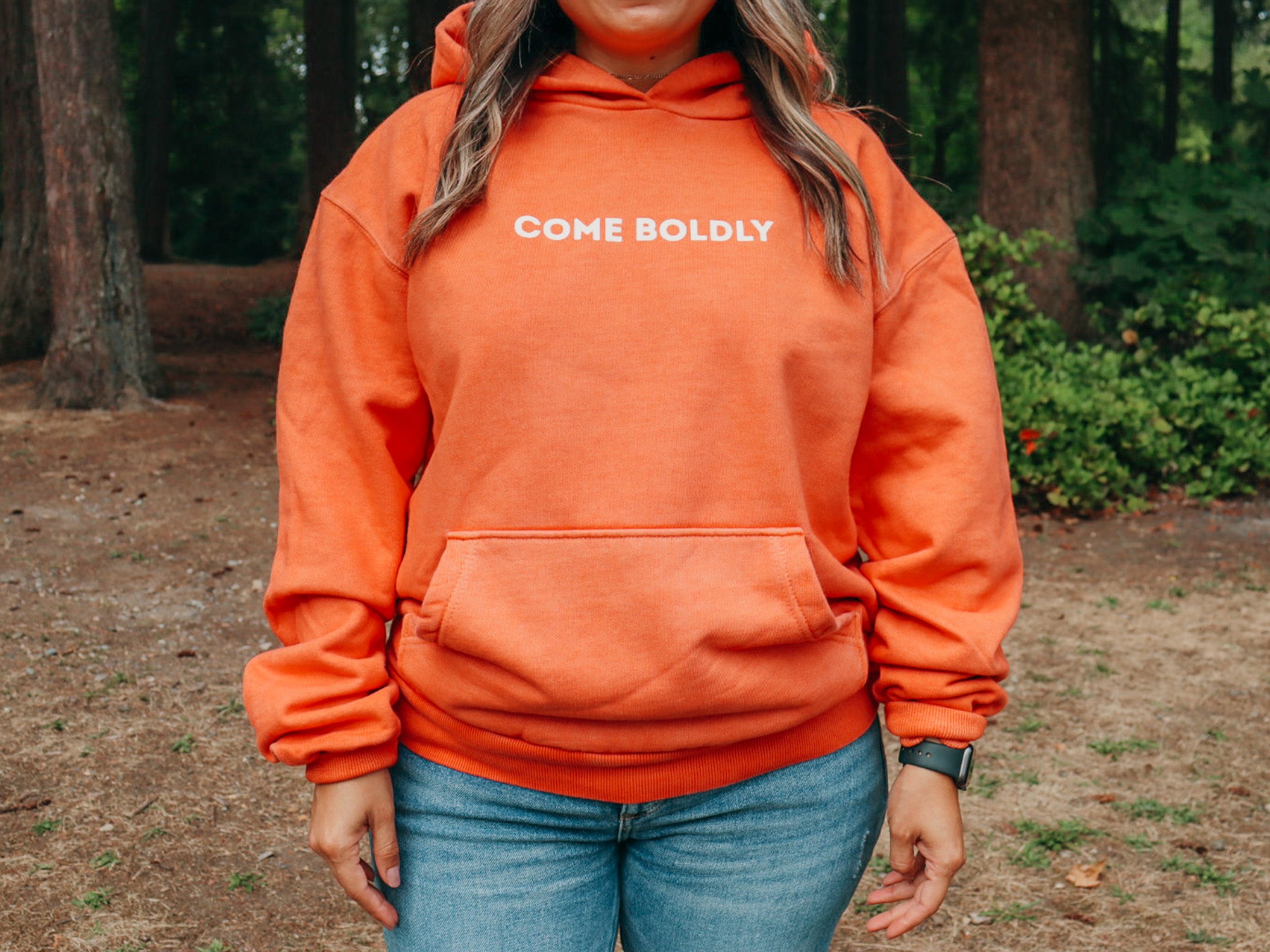 Designed with the conference theme “COME BOLDLY” (Hebrews 4:16), this cozy hoodie is more than just apparel—it’s a wearable reminder of the boldness we have through Christ to approach His throne of grace with confidence.