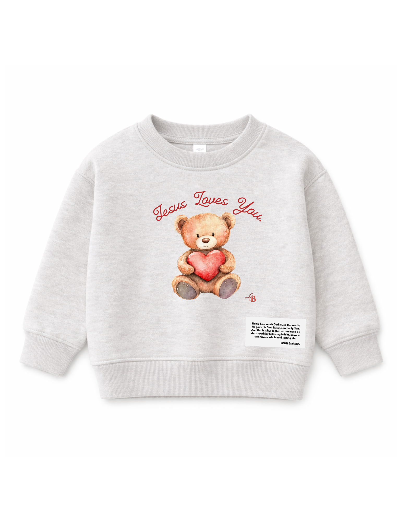 Jesus Loves You Teddy Bear Crewneck – Toddler Christian Sweatshirt | John 3:16